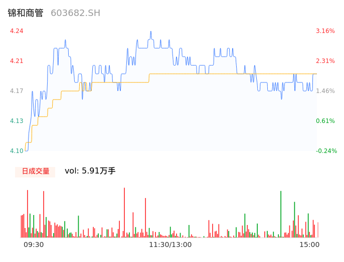 04月23日,锦和商管收报4.19,股价涨幅1.95%,成交金额2474.29万元,换手率1.25%。