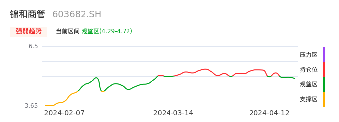 04月12日,锦和商管收报4.65,股价涨幅-1.06%,成交金额3255.53万元,换手率1.47%。
