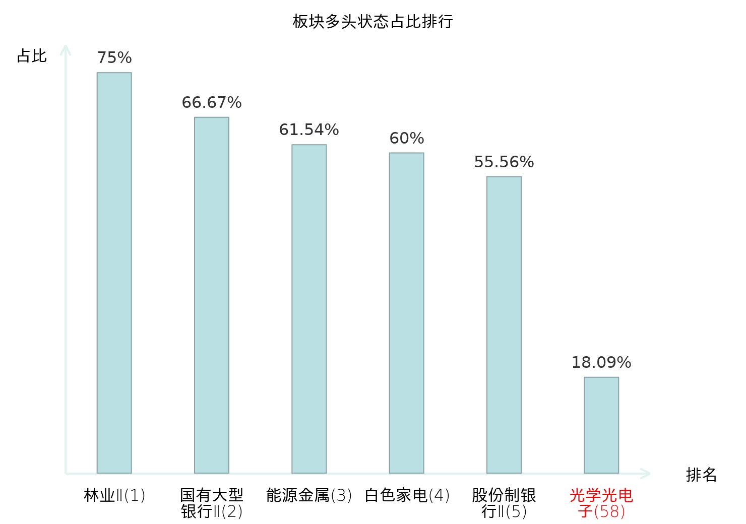 全市场所有行业板块中主力多头状态占比排名中,林业Ⅱ板块位居第一。数字媒体板块名次提升最快,较昨日上升48位。