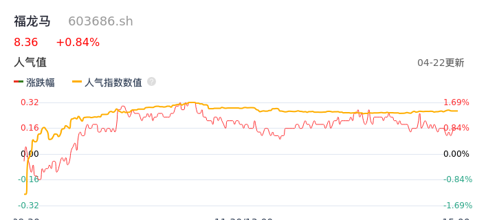 04月22日,福龙马收报8.36,股价涨幅0.84%,成交金额5071.81万元,换手率1.46%。