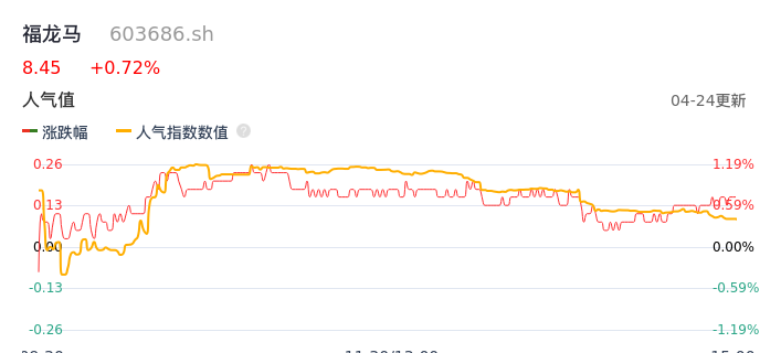 04月24日,福龙马收报8.45,股价涨幅0.72%,成交金额2955.41万元,换手率0.84%。