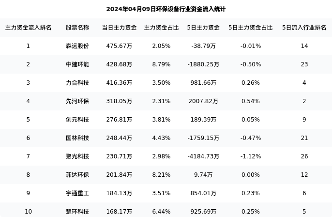 从主力资金流向来看,环保设备行业今日主力资金流入3.32亿元,在所有申万二级行业中排名:112/131。
