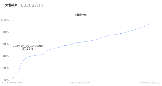 根据成交分布分析,该股票当天缩量成交,成交清淡。时间上看,早盘前半小时成交量占据当天总成交量的37.16%;价格上看,成交呈现中间峰。成交分布分析主要研究股票成交的分布特性,不具有预测功能,请知悉。