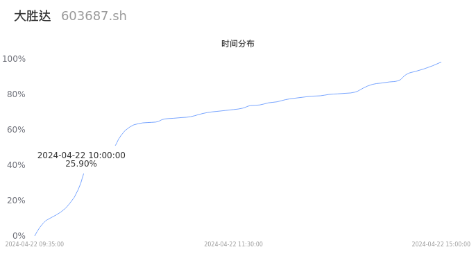 根据成交分布分析,该股票当天放量成交,成交清淡。时间上看,早盘前半小时成交量占据当天总成交量的25.9%;价格上看,成交呈现右偏峰。成交分布分析主要研究股票成交的分布特性,不具有预测功能,请知悉。