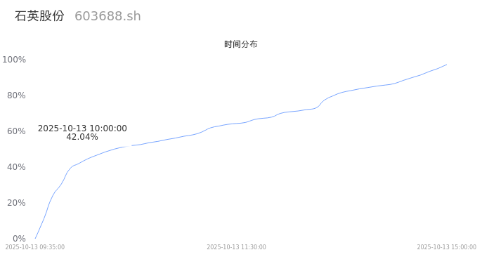 603688石英股份2025年10月13日成交28.32万手,成交金额12.12亿,相较昨日放量6.75万手,换手率5.23%,成交清淡。
