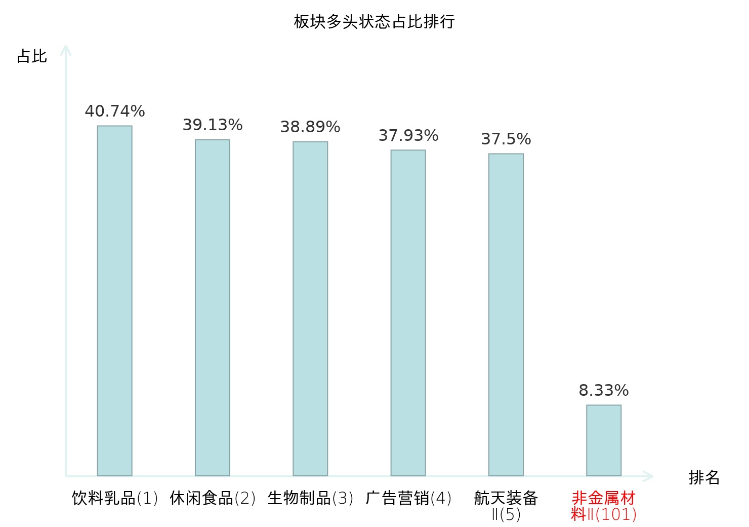 全市场所有行业板块中主力多头状态占比排名中,饮料乳品板块位居第一。国有大型银行Ⅱ板块名次提升最快,较昨日上升71位。