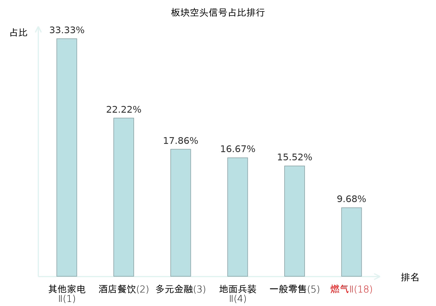 全市场所有行业板块中主力空头信号占比排名中,其他家电Ⅱ板块位居第一。广告营销板块名次提升最快,较昨日上升111位。