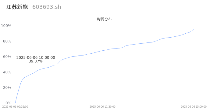 603693江苏新能2025年06月06日成交25.14万手,成交金额3.58亿,相较昨日缩量6.42万手,换手率2.82%,成交清淡。