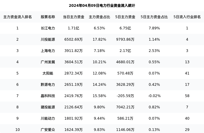从主力资金流向来看,电力行业今日主力资金流入52.21亿元,在所有申万二级行业中排名:47/131。