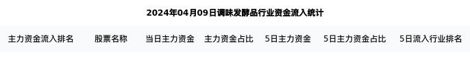 从主力资金流向来看,调味发酵品行业今日主力资金流入3.64亿元,在所有申万二级行业中排名:11/131。