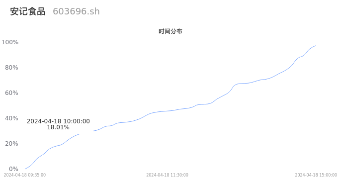 603696安记食品2024年04月18日成交7.43万手,成交金额6095.53万元,相较昨日放量4204手,换手率3.16%,成交清淡。