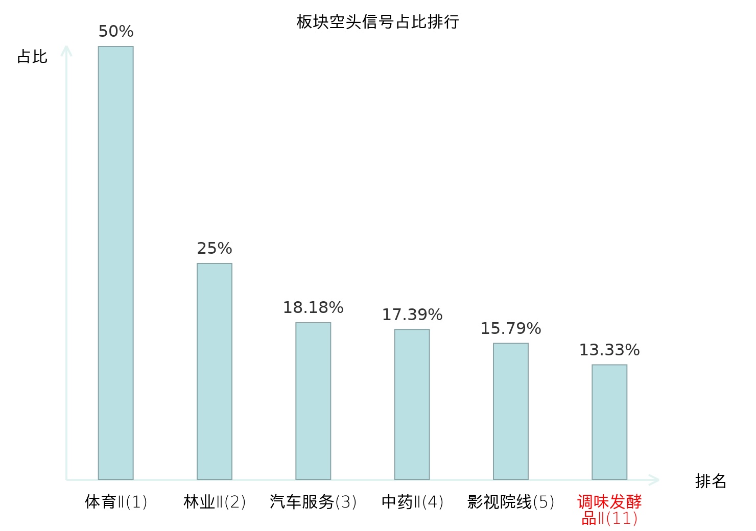 全市场所有行业板块中主力空头信号占比排名中,体育Ⅱ板块位居第一。文娱用品板块名次提升最快,较昨日上升101位。