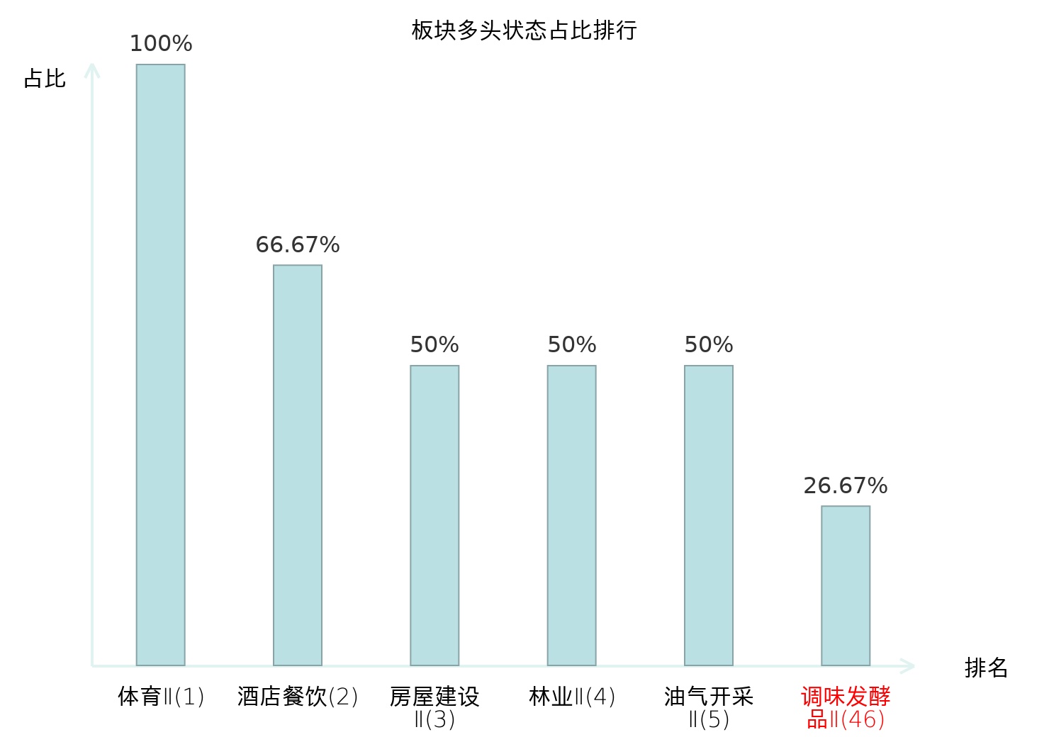 全市场所有行业板块中主力多头状态占比排名中,体育Ⅱ板块位居第一。国有大型银行Ⅱ板块名次提升最快,较昨日上升100位。