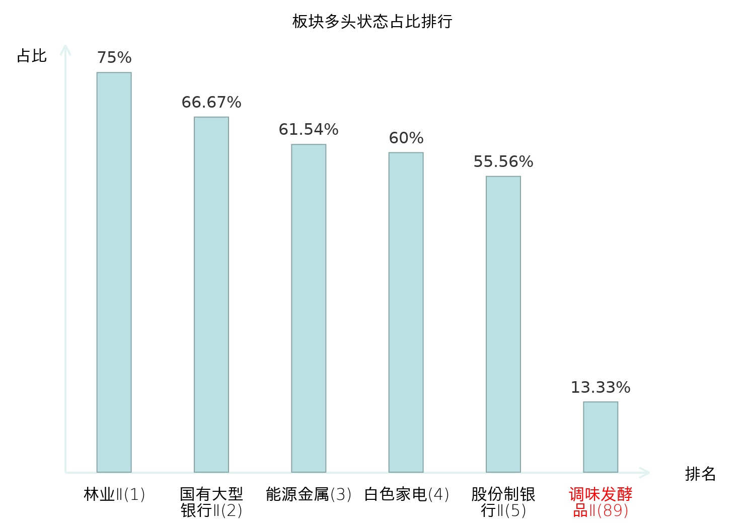 全市场所有行业板块中主力多头状态占比排名中,林业Ⅱ板块位居第一。数字媒体板块名次提升最快,较昨日上升48位。