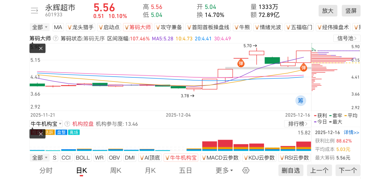 1)20251216-永辉超市-601933-【筹码大师】和【牛牛机构宝】-近期出现弹信号且底部量柱由绿转红