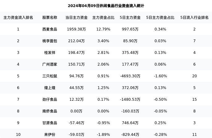 从主力资金流向来看,休闲食品行业今日主力资金流入2.69亿元,在所有申万二级行业中排名:90/131。