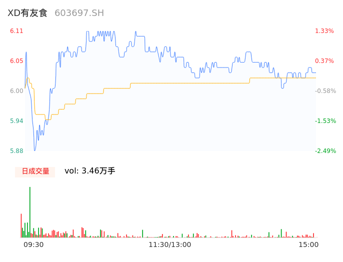 04月22日,XD有友食收报6.03,股价涨幅0.00%,成交金额2082.76万元,换手率0.81%。