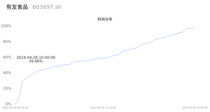 603697有友食品2024年04月26日成交3.36万手,成交金额2071.68万元,相较昨日放量7709手,换手率0.79%,成交清淡。