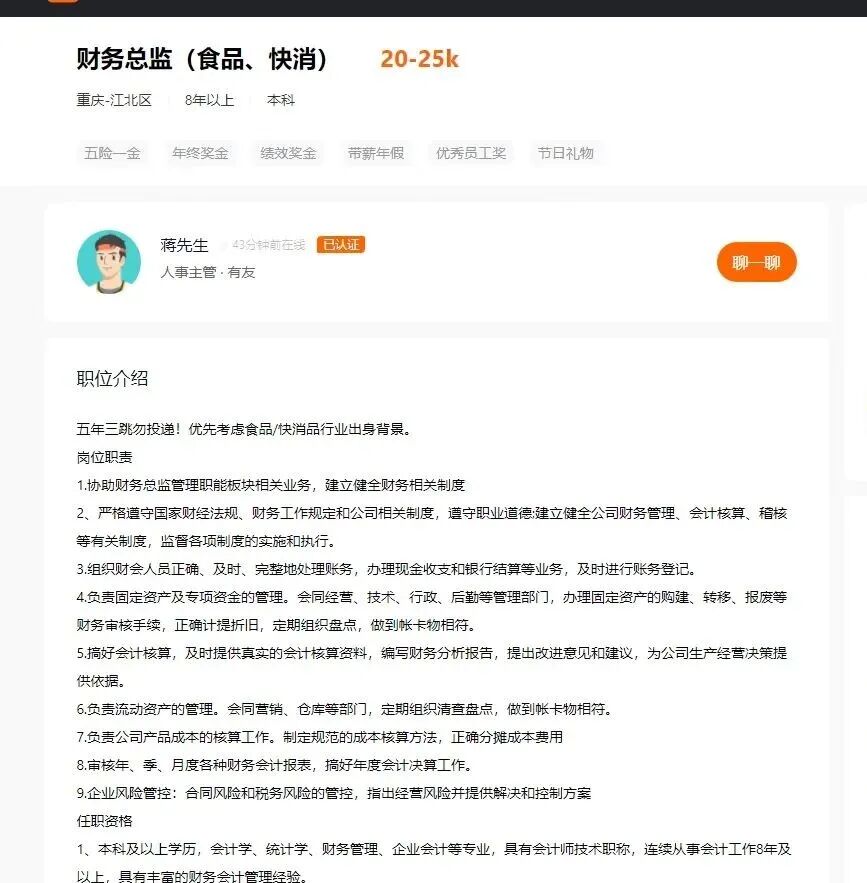 证券时报·e公司记者在某招聘网站上看到,“泡椒凤爪第一股”有友食品(603697)正在招聘财务总监。