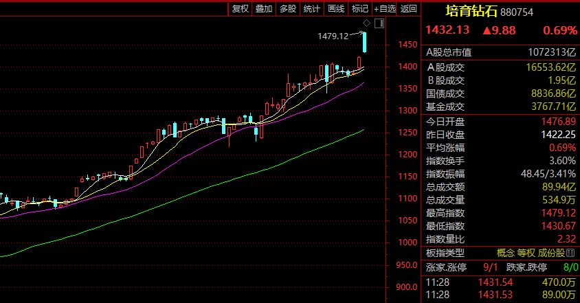 培育钻石概念股早间大幅高开,板块指数一度涨逾4%,创历史新高。黄河旋风开盘涨停,股价创年内新高。四方达亦以20%涨停价开盘,惠丰钻石、博云新材等涨幅居前。