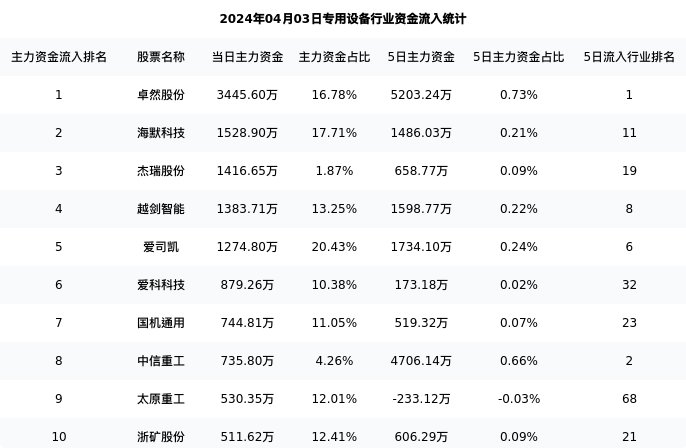 从主力资金流向来看,专用设备行业今日主力资金流入33.20亿元,在所有申万二级行业中排名:43/131。