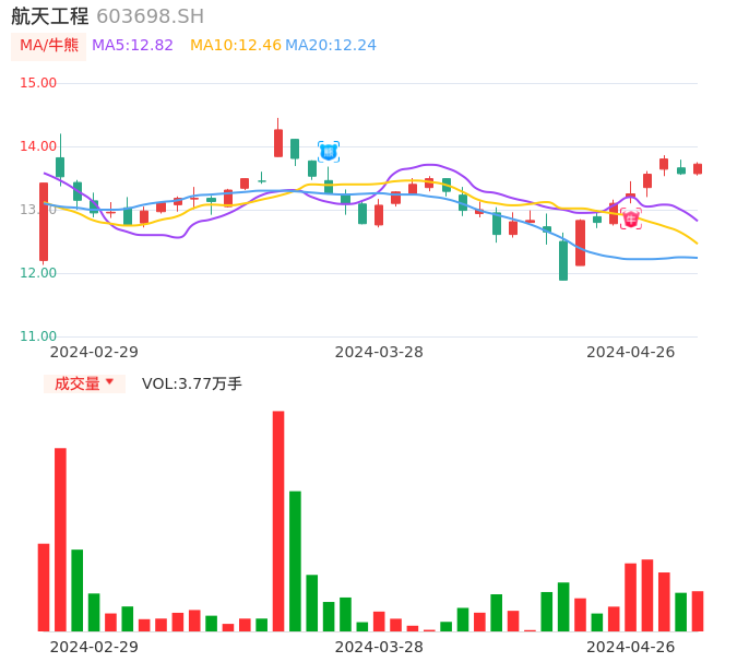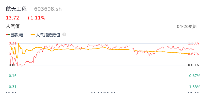 04月26日,航天工程收报13.72,股价涨幅1.11%,成交金额5150.92万元,换手率0.70%。