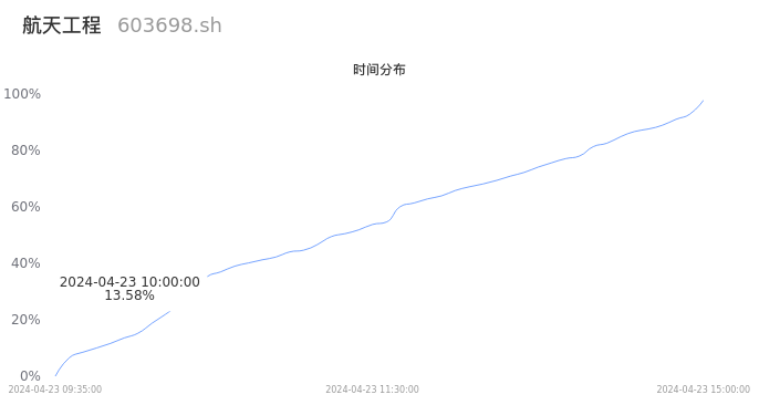 603698航天工程2024年04月23日成交5.16万手,成交金额6957.93万元,相较昨日放量1694手,换手率0.96%,成交清淡。