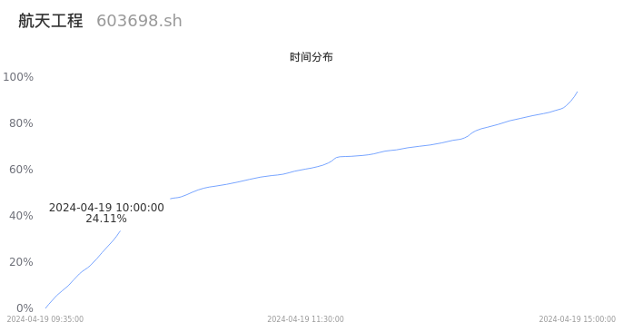 603698航天工程2024年04月19日成交3.09万手,成交金额4018.54万元,相较昨日放量3000手,换手率0.58%,成交清淡。