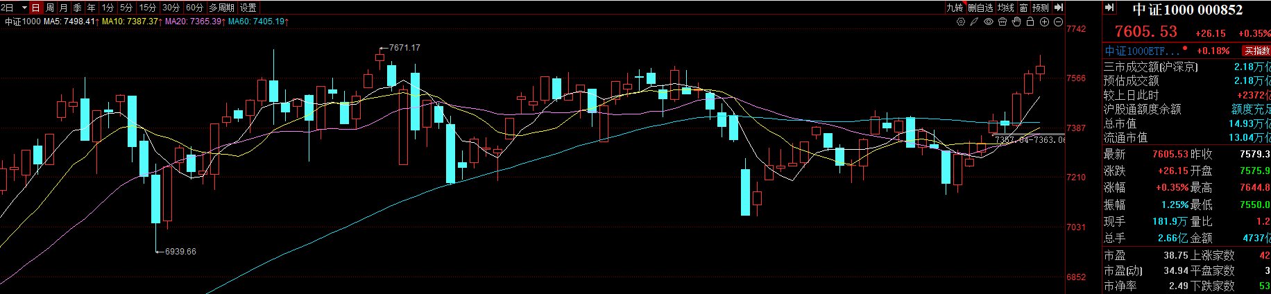 中证1000的走势还是比较漂亮的,小阳线稳步进攻。下周依然有新高的预期。
