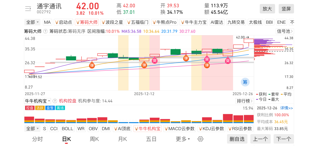 2)20251226-通宇通讯-002792-【筹码大师】和【牛牛机构宝】-近期出现弹信号且底部量柱由绿转红