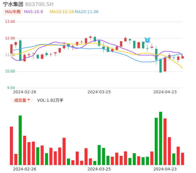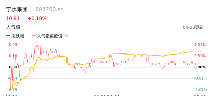 04月23日,宁水集团收报10.91,股价涨幅0.18%,成交金额1989.47万元,换手率0.90%。