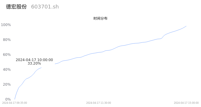 根据成交分布分析,该股票当天放量成交,成交清淡。时间上看,早盘前半小时成交量占据当天总成交量的33.2%;价格上看,成交呈现中间峰。成交分布分析主要研究股票成交的分布特性,不具有预测功能,请知悉。