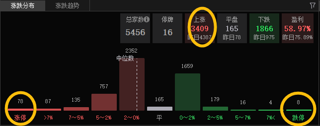 个股表现这块下午红盘个股较午间少了100只,但全天3400只红盘,涨停78只(商业航天、福建海峡、机器人占了一半),跌停8只,中位数涨幅收窄。量能下午放大的不明显,全天放量3100亿,时隔16个交易日再度回到2万亿上方,连续2天快速放量后,短期要注意再连续放大量容易见短期高点,但是如果出现缩量的话,则会延续震荡,结合我们午间对沪指、创业板的技术面判断,大家要重点关注指数的表现。这样你的策略上才不会盲目的激进。