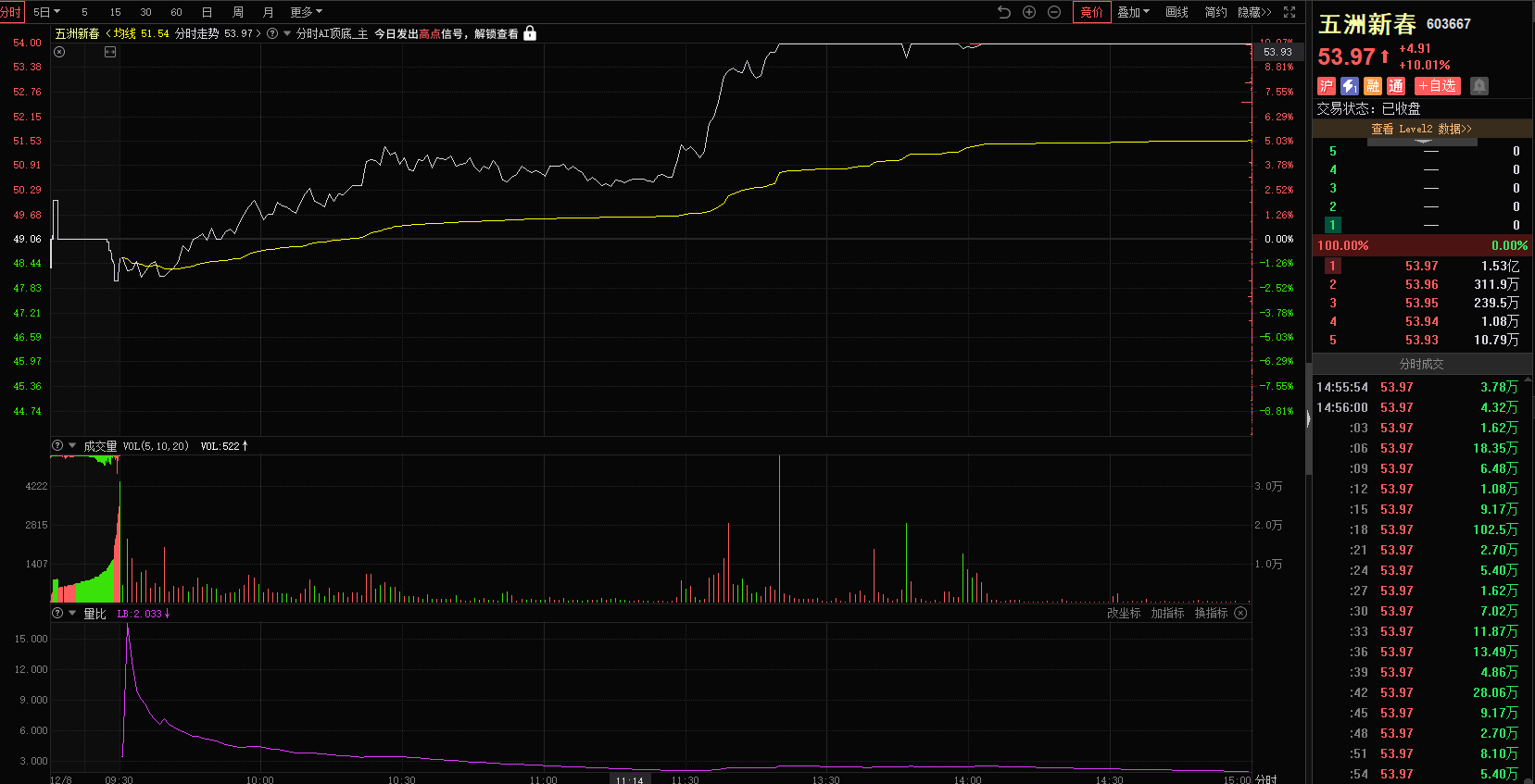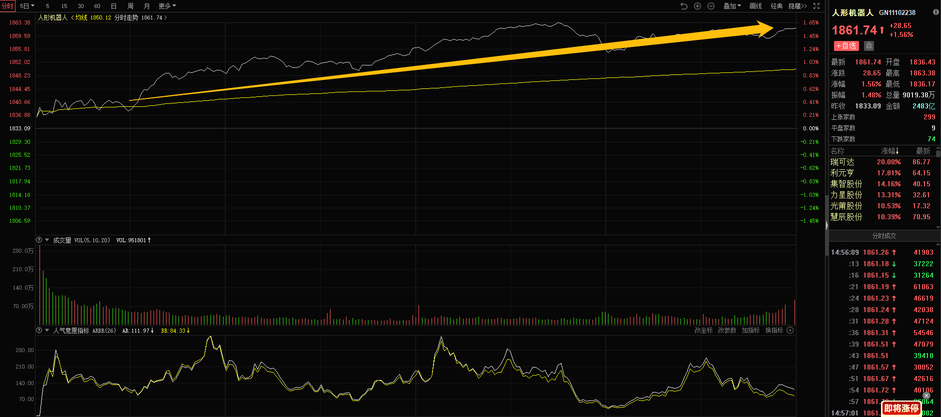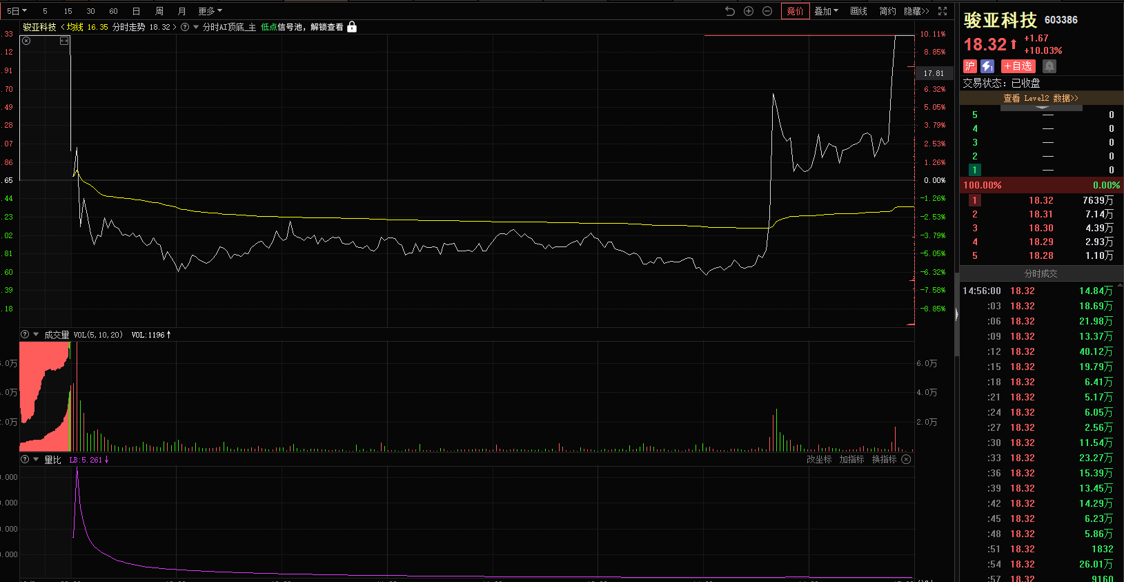 商业航天分歧释放的资金要注意回流机器人方向,下午五洲新春板了,卧龙电驱、三花智控、长盈精密,浙江荣泰均出现不同程度的拉升,尾盘骏亚科技更是深水区拉升,最终成功在尾盘偷袭成功上板,达成4连板。机器人这边下午也有一个消息利好就是广东“十五五”规划建议将“人工智能+机器人”打造成为高技术、高成长、大体量的产业集群。所以今天尾盘拉升更像是一次政策消息+资金分歧的回流,明天就看五洲新春能否高举高打带人气了。