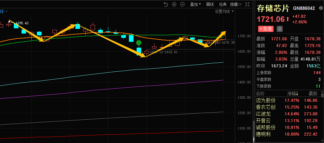 而AI硬件这边下午CPO方向易中天,天孚通信涨停开板,中际旭创、新易盛也都冲高回落,算力硬件回落,存力代表的存储芯片却是稳步推升上涨的,本质上也是硬件方向的高低切。加上周末的消息存储芯片现货价格近期大幅飙升,DDR4x颗粒年内涨幅超4倍,渠道端已出现“惜售”囤货现象,但手机等终端厂商目前库存水位处于历史低位,普遍低于4周。也就是手机这块有补货的预期,最终也会反应在存储的涨价上,因此今天趋势中军香农芯创、江波龙均大涨超10%+,今天这种大幅放量的行情,趋势股的行情机会又开始了(CPO、存储芯片都是机构抱团的老赛达),反观一些连板高位的下午不少开板跳水的,一旦机构回归市场,风格又要重新定义了。但不是说这个位置立马就去追涨,还得注意低吸,逻辑在,也讲究买入的位置。