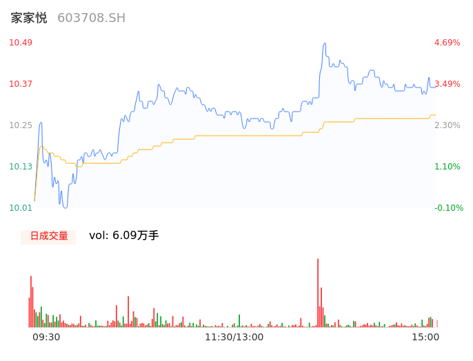04月22日,家家悦收报10.38,股价涨幅3.59%,成交金额6259.06万元,换手率1.02%。