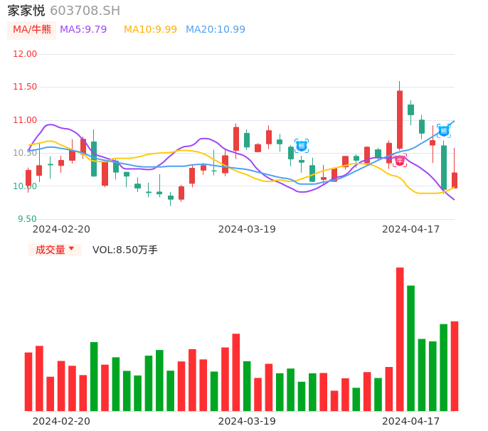 04月17日,家家悦收报10.20,股价涨幅2.51%,成交金额8736.92万元,换手率1.42%。