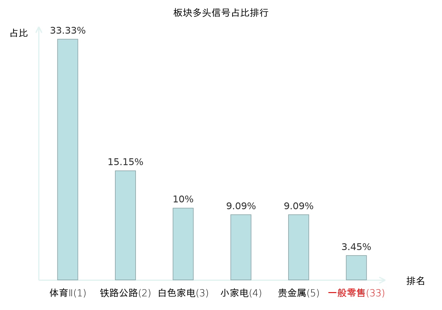 全市场所有行业板块中主力多头信号占比排名中,体育Ⅱ板块位居第一。体育Ⅱ板块名次提升最快,较昨日上升129位。