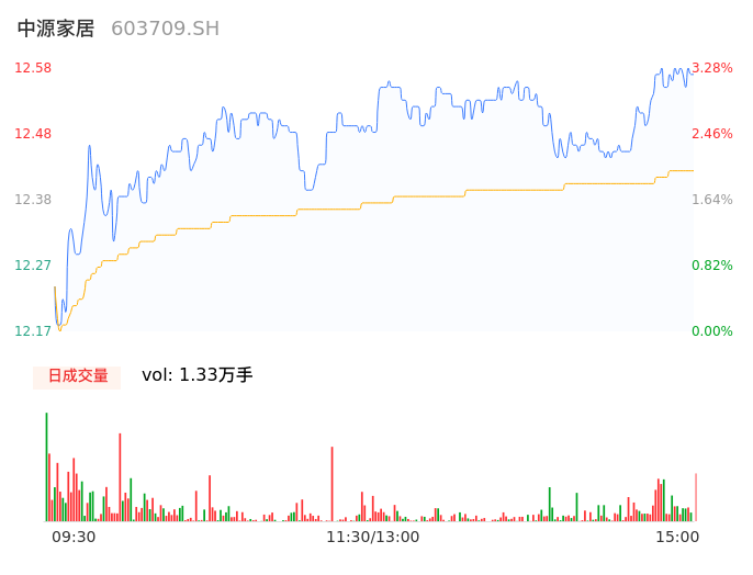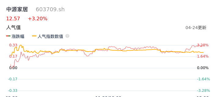 04月24日,中源家居收报12.57,股价涨幅3.20%,成交金额1657.97万元,换手率1.39%。