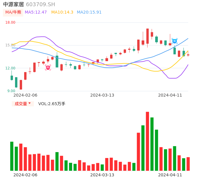 中源家居牛熊点指标分析报告-20240411