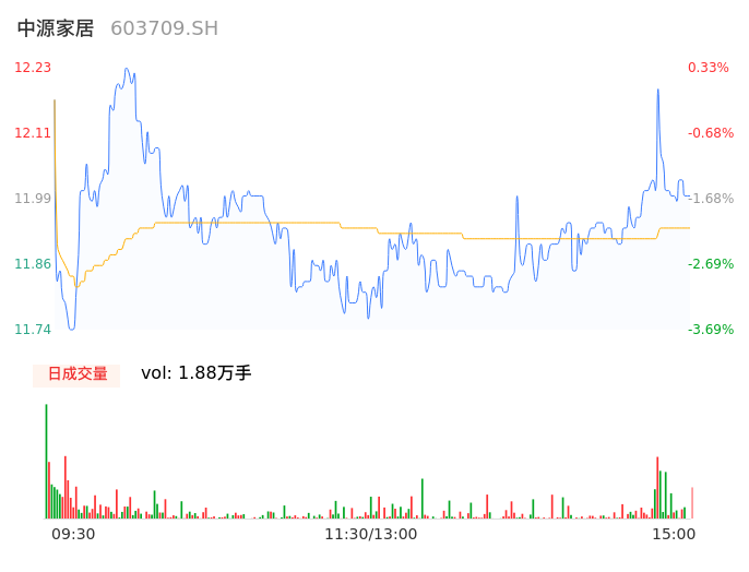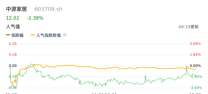 04月19日,中源家居收报12.02,股价涨幅-1.39%,成交金额2241.68万元,换手率1.96%。