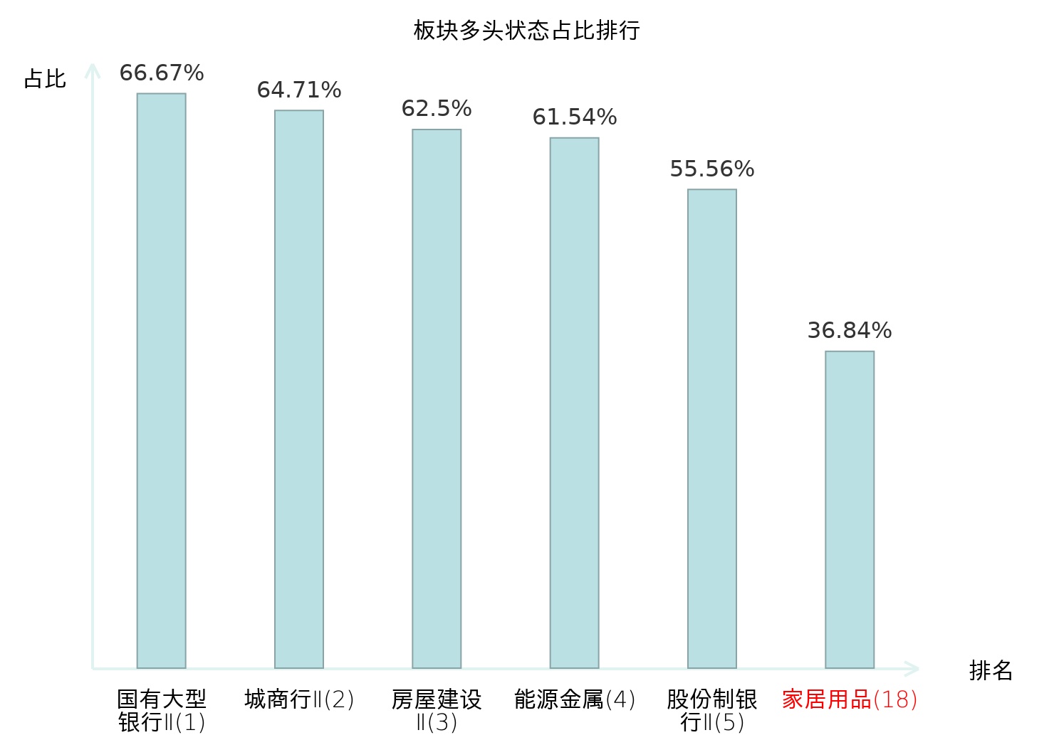 全市场所有行业板块中主力多头状态占比排名中,国有大型银行Ⅱ板块位居第一。普钢板块名次提升最快,较昨日上升65位。