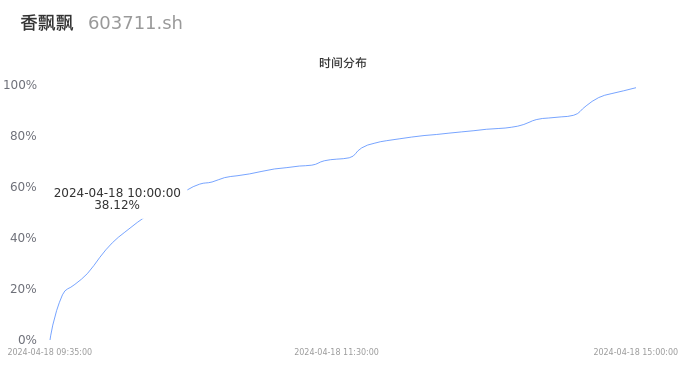 根据成交分布分析,该股票当天放量成交,成交清淡。时间上看,早盘前半小时成交量占据当天总成交量的38.12%;价格上看,成交呈现中间峰。成交分布分析主要研究股票成交的分布特性,不具有预测功能,请知悉。