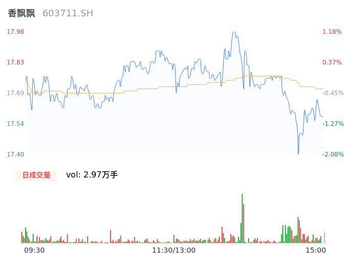 04月26日,香飘飘收报17.59,股价涨幅-1.01%,成交金额5257.77万元,换手率0.72%。