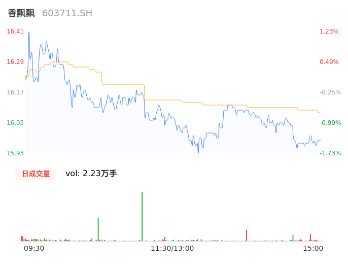 04月12日,香飘飘收报15.96,股价涨幅-1.54%,成交金额3588.62万元,换手率0.54%。