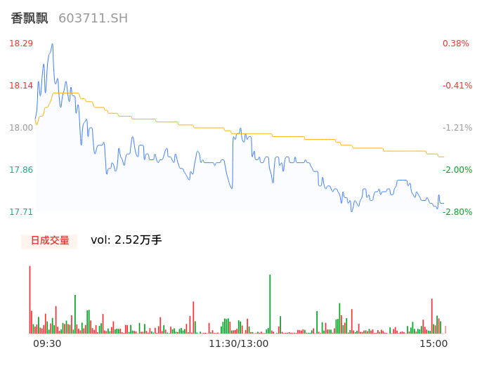 04月25日,香飘飘收报17.77,股价涨幅-2.47%,成交金额4518.20万元,换手率0.61%。