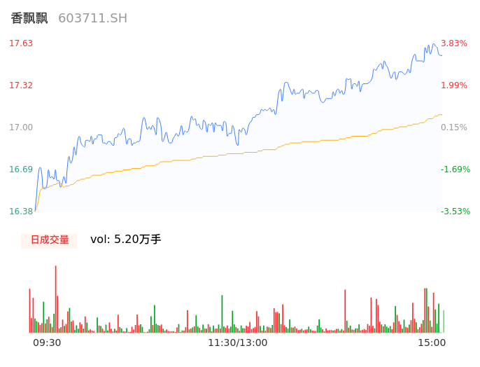 04月22日,香飘飘收报17.51,股价涨幅3.12%,成交金额8889.91万元,换手率1.27%。