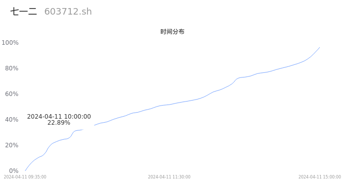 603712七一二2024年04月11日成交8.19万手,成交金额1.81亿元,相较昨日放量5872手,换手率1.06%,成交清淡。