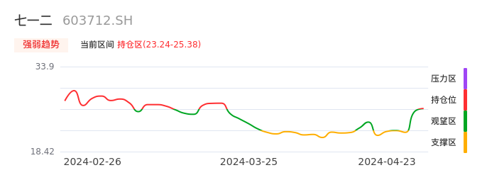 04月23日,七一二收报23.30,股价涨幅1.44%,成交金额9.92亿元,换手率5.43%。
