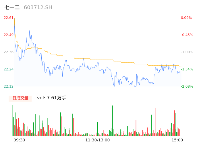 04月10日,七一二收报22.23,股价涨幅-1.59%,成交金额1.69亿元,换手率0.99%。